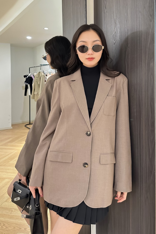 Áo blazer luôn là món đồ không thể thiếu trong tủ quần áo của các cô nàng công sở. Vào mùa thu đông, blazer với chất liệu dày dặn như len, dạ hoặc vải tweed sẽ giúp bạn vừa giữ ấm vừa trông chuyên nghiệp. Kiểu dáng oversize đang được ưa chuộng, dễ dàng phối với nhiều trang phục khác như váy liền, chân váy bút chì hoặc quần âu. Đặc biệt, các tông màu trung tính như xám, đen, be hay xanh navy sẽ giúp bạn dễ dàng phối đồ và mang lại vẻ thanh lịch.