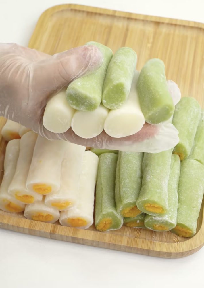 Không chỉ dừng lại ở hình thức, chiếc bánh dẻo kéo sợi còn có khả năng “tùy biến” cực cao. Lớp vỏ có thể mang hương vị matcha, cacao hoặc giữ nguyên sự truyền thống với bột bánh dẻo. Phần nhân bên trong cũng đa dạng: từ chocolate, trứng muối, phô mai cho đến mứt trái cây.