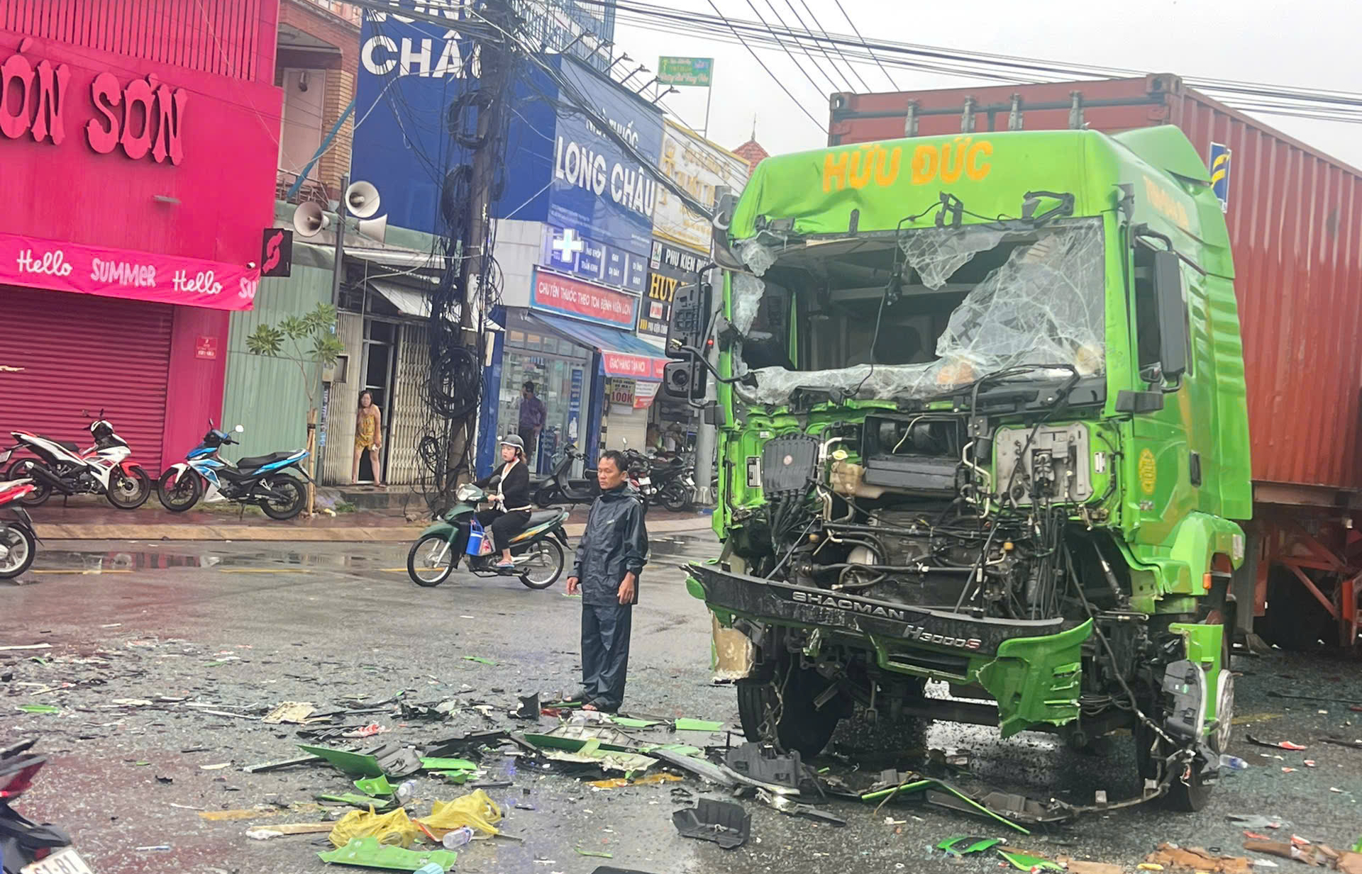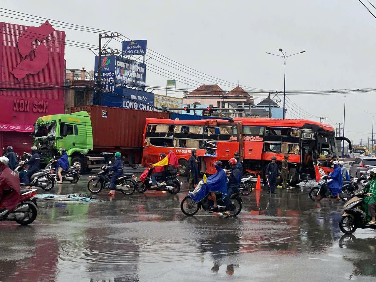 Một lãnh đạo Phòng Cảnh sát giao thông cho biết bước đầu xác định vụ tai nạn do xe khách phanh gấp vì đường trơn nên đã chao đảo, rồi đâm vào xe container.