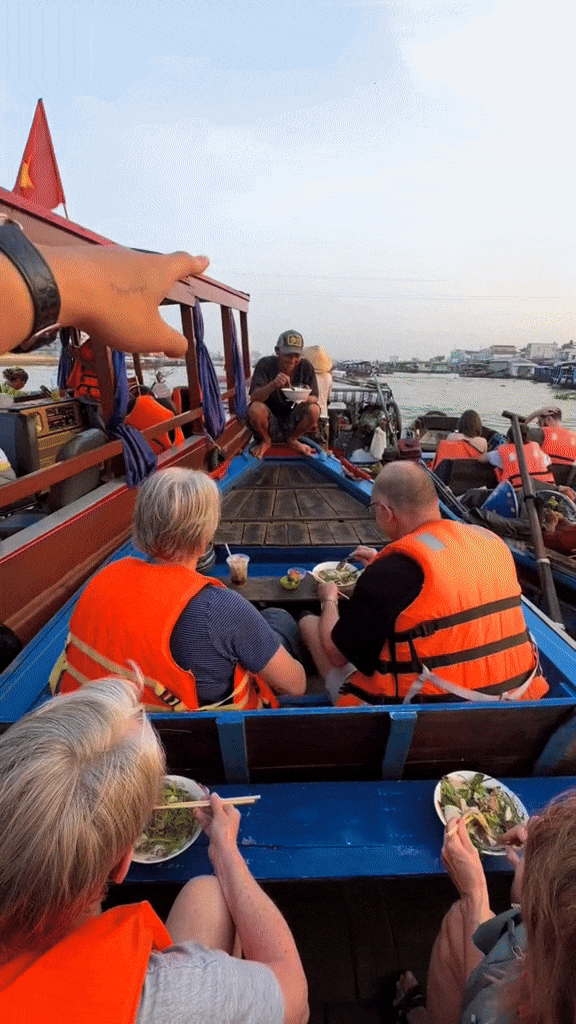 Câu chuyện bắt đầu từ một đoạn video được chia sẻ trên kênh YouTube của hướng dẫn viên du lịch tên Phát Ba Guide. Trong hành trình khám phá miền Tây sông nước, các du khách phương Tây đang thưởng thức món hủ tiếu trên một chiếc thuyền nhỏ thì bất ngờ… dừng đũa, rút điện thoại chụp hình. Điều thu hút sự chú ý của họ không phải là món ăn hay phong cảnh, mà là dáng ngồi chồm hổm của người bán hàng, một tư thế quá đỗi bình thường ở Việt Nam nhưng lại lạ lẫm với người nước ngoài.