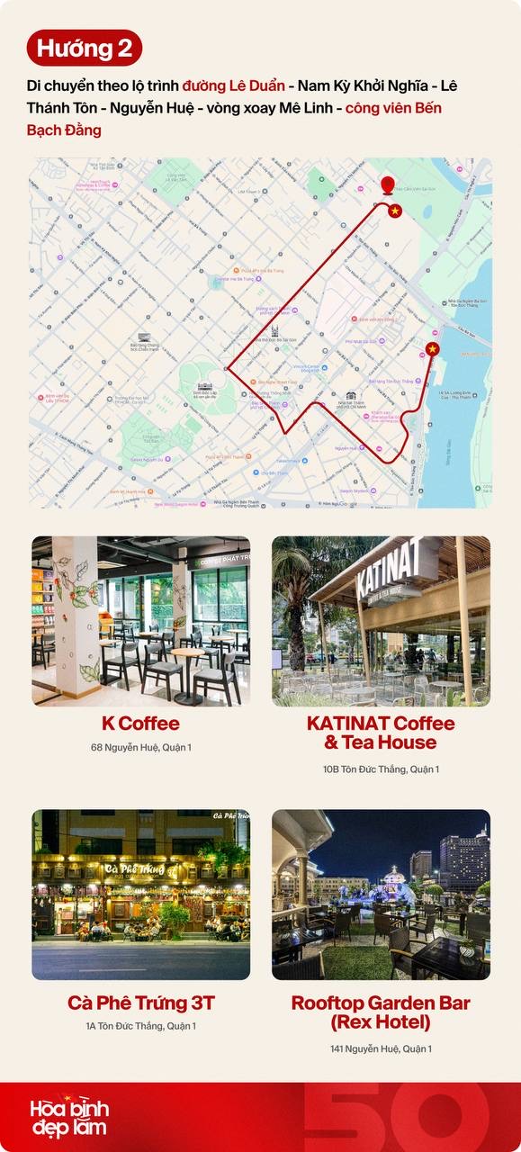 Diễu hành năm nay sẽ chia thành 4 trực đường chính, tuy nhiên Lê Duẩn chính là trục giao nhau của 4 hướng diễu binh trọng điểm, đồng thời là khu vực tập trung nhiều quán cà phê và hàng ăn hoạt động xuyên đêm, sẵn sàng phục vụ lượng lớn người đổ về khu vực này: