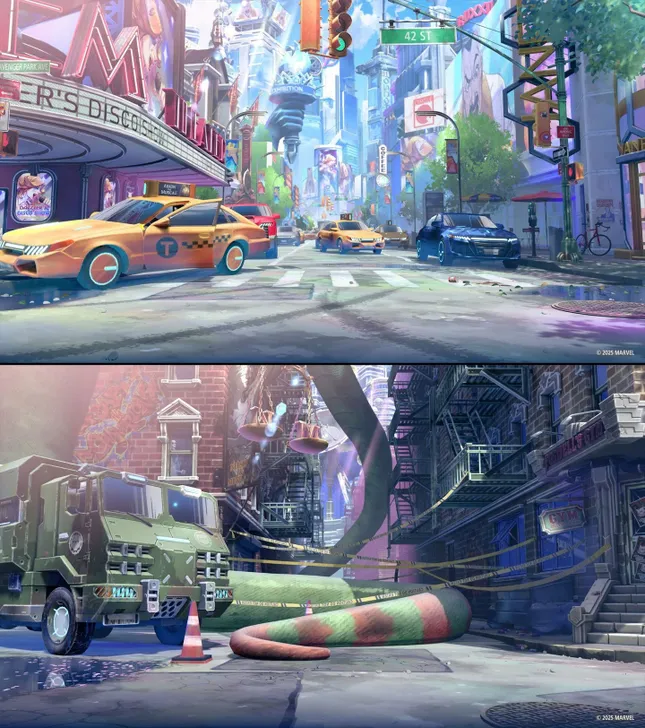 Điểm nổi bật khác của game là đồ họa 2.5D mang cảm hứng từ hoạt hình Nhật Bản, khác biệt với phong cách siêu anh hùng thường thấy. Trailer đầu tiên giới thiệu các nhân vật quen thuộc như Spider-Man, Iron Man, Ghost Rider hay Ms. Marvel, với hiệu ứng chiến đấu và tạo hình bắt mắt, tạo ấn tượng mạnh ngay từ lần đầu ra mắt.