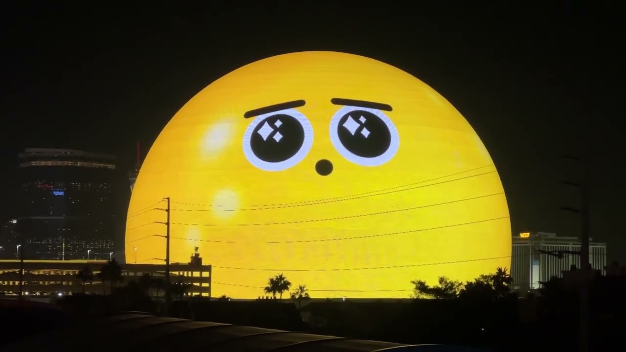 Giữa muôn vàn điểm check-in tại Las Vegas, một “nhân vật” mới vừa được cư dân mạng trao danh hiệu “idol cảm xúc” chính là emoji khổng lồ xuất hiện tại công trình The Sphere Las Vegas. Vốn dĩ chỉ là hiệu ứng LED trình chiếu bên ngoài nhà thi đấu hình cầu, biểu tượng này lại khiến internet rung rinh nhờ khả năng “diễn sâu” cùng biểu cảm thay đổi linh hoạt.