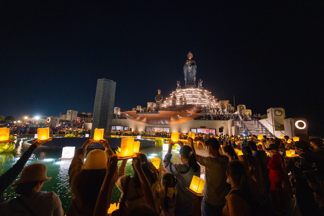 Một trong những hoạt động đặc sắc nhất trong đêm rằm tháng Giêng tại núi Bà Đen chính là lễ thả hoa đăng. Hàng nghìn ngọn đèn nhỏ được thắp lên bởi chính tay người hành hương, mang theo lời nguyện ước chân thành về một năm suôn sẻ, vạn sự như ý.