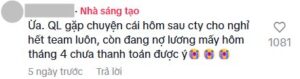 Trong phần bình luận, T. còn cho biết: “QL gặp chuyện cái hôm sau công ty cho nghỉ hết team luôn, còn đang nợ lương mấy hôm tháng 4 chưa thanh toán được ý”. Một người khác xưng là content creator từng làm cho Quang Linh Store cũng xác nhận bị nợ lương và còn giữ tin nhắn liên quan đến việc này.