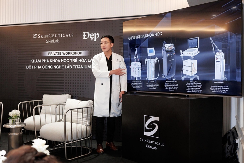 Một trong những tâm điểm tại buổi workshop “Khám phá khoa học trẻ hóa làn da” chính là liệu trình Láb Titanium Lifting công nghệ đột phá độc quyền của SkinCeuticals SkinLab. Sử dụng công nghệ soprano titanium laser tích hợp 3 bước sóng trong 1 thiết bị, phương pháp này tạo ra ba hiệu ứng đồng thời: sáng – săn – gọn (brightening, tightening, sculpting), đồng thời không gây đau và không yêu cầu nghỉ dưỡng.