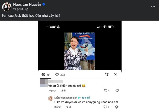 Chiều ngày 4/6, trang Facebook cá nhân của diễn viên Ngọc Lan bỗng trở thành “chiến địa” khi cô đăng tải ảnh chụp màn hình một bình luận từ một tài khoản được cho là fan của Jack, trong đó vô duyên nhắc tên Thiên An trong một video hoàn toàn không liên quan. Ngay […]