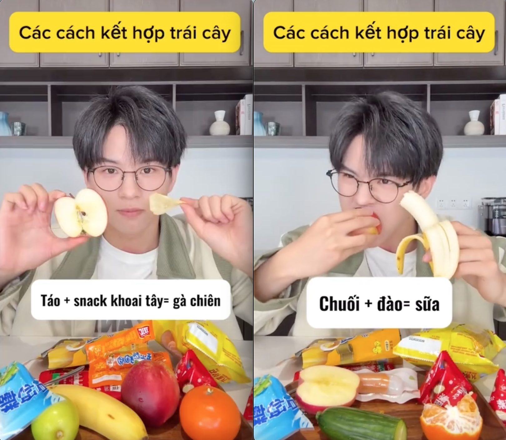 Trên nền tảng TikTok và nhiều mạng xã hội khác, hàng loạt video ghi lại cảnh người dùng kết hợp hai loại thực phẩm khác nhau, rồi biểu cảm bất ngờ khi phát hiện ra một hương vị mới. Chẳng hạn, táo ăn kèm snack khoai tây được cho là có vị giống gà chiên, chuối kết hợp đào lại gợi cảm giác uống sữa đào, hay dưa chuột ăn với dưa hấu mang đến vị dưa lưới.