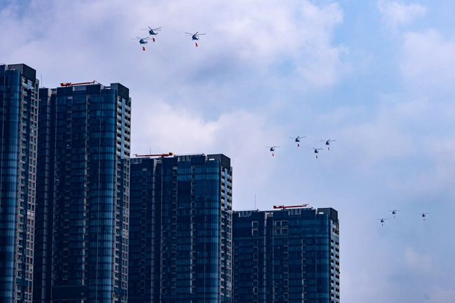 Không ít hình ảnh, video ghi lại cảnh tượng trực thăng bay qua giữa các tòa nhà cao tầng được lan truyền rộng rãi, đi kèm những dòng cảm xúc bồi hồi, xúc động. Không khí chuẩn bị cho đại lễ như đang lan tỏa khắp các ngõ ngách của thành phố.