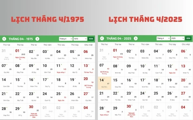 Điều này càng trở nên đặc biệt khi tháng 4/2025 là thời điểm tròn 50 năm ngày Giải phóng miền Nam, thống nhất đất nước, đánh dấu cột mốc lịch sử thiêng liêng mà mỗi người Việt Nam đều khắc ghi. Trên các nền tảng mạng xã hội, hình ảnh so sánh lịch hai năm liên tục được lan truyền, kèm theo những dòng cảm xúc: “Sự lặp lại này là cách thời gian nhắc ta nhớ về cội nguồn”.