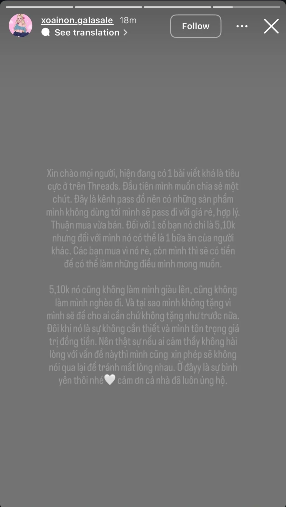 Đồng thời, cô nhấn mạnh việc lựa chọn bán thay vì tặng là cách thể hiện sự trân trọng đồng tiền và không muốn tạo thói quen “cho không” mọi thứ chỉ vì đó là đồ nhỏ. Dù vậy, cô cũng đã xóa bài đăng về chiếc nhíp để tránh hiểu lầm không đáng có và bày tỏ không muốn nói thêm về vụ việc.